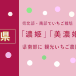 岐阜県では、平野部の広がる南部高冷地の北部で、それぞれの特性を活かしたいちご栽培がさかんです。いちご狩りのできる観光農園はおもに南部になります。