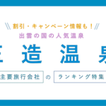 出雲の国の人気温泉!主要旅行会社の【玉造温泉】旅館ランキング・おすすめ旅行プランや、キャンペーン・クーポン情報をまとめました。