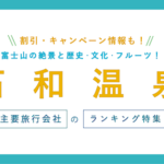主要旅行会社の【石和温泉】旅館ランキング・おすすめ旅行プランや、キャンペーン・クーポン情報をまとめました。